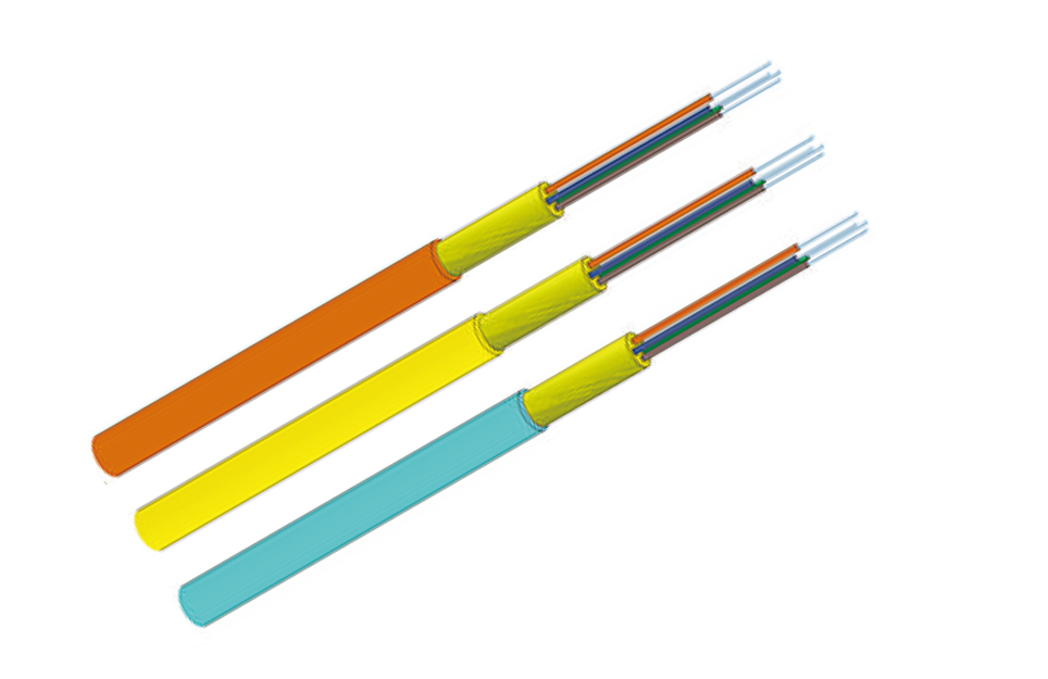 用外径为250μm 的紫外光固化一次涂覆光纤直接紧套一层材料制成900μm紧套光纤。以紧套光纤为单元,在单根或多根紧套光纤四周布放适当的抗张力材料,挤制一层护套料,制成单芯或多芯紧套光缆。主要用于室内布线,单根光缆最大纤芯数达到144 芯。